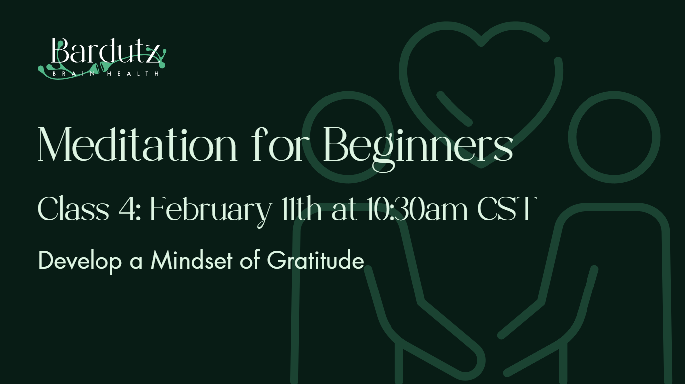 Our last event in this inaugural series, taking place on February 11th, is titled Develop a Mindset of Gratitude. Together, we will explore how gratitude can elevate our sense of well-being and overall peace.